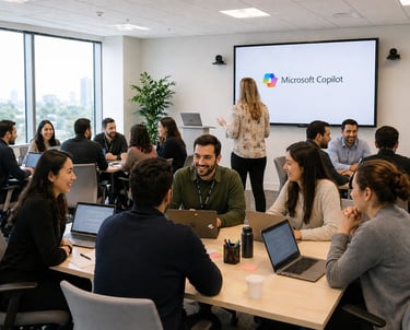 These sessions introduce AI and Microsoft Copilot in a clear, accessible way, focusing on real day‑to‑day work. Participants see practical examples, try relevant use cases themselves, and leave with stronger confidence to start using AI immediately.